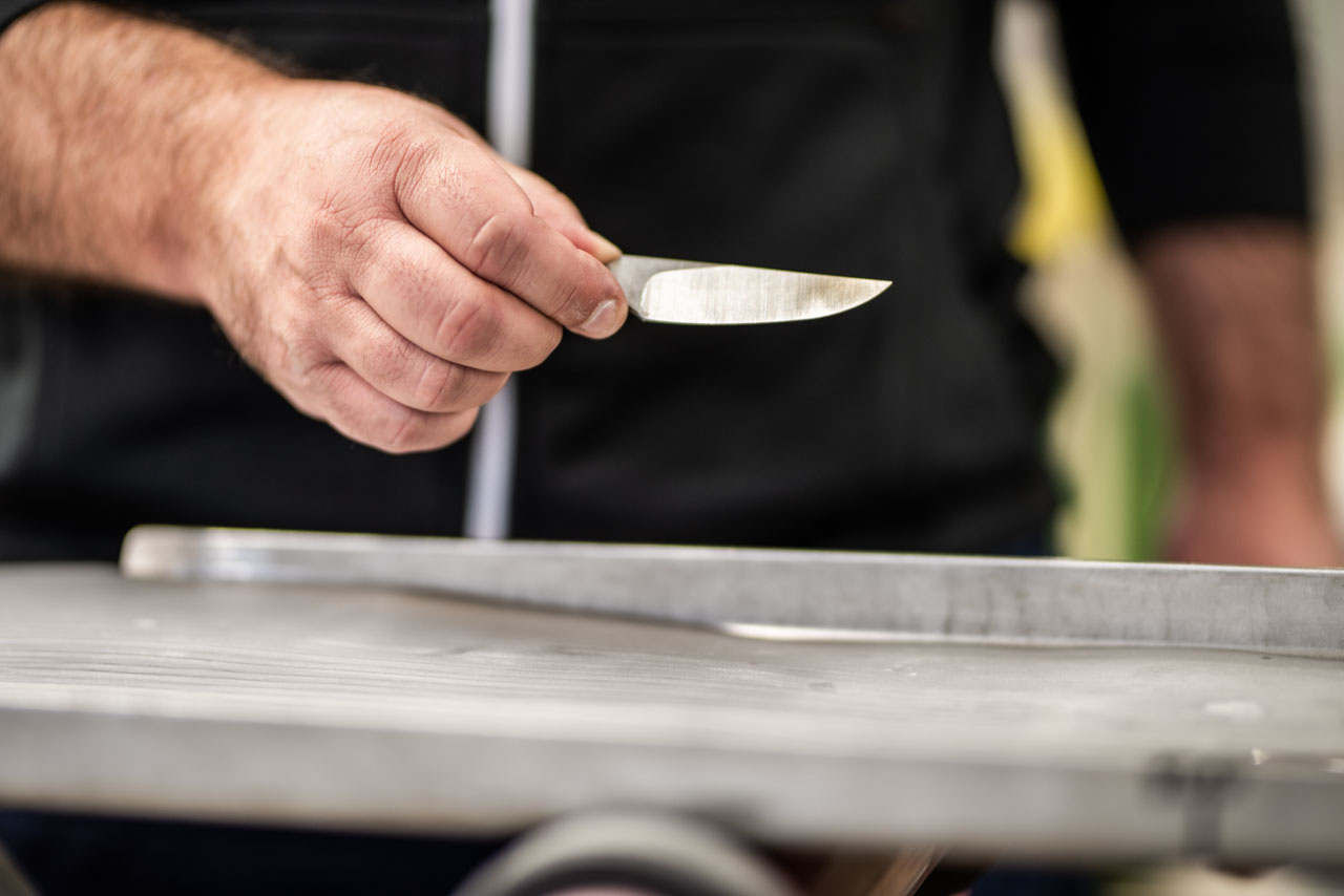 Unser Superstahl-Lieferant voestalpine HPM Schweiz liess verlauten: «Wir sind nicht sicher, ob sich der Uddeholm Vanax SuperClean im Durchlaufofen härten lässt». Diese unsichere Angabe war für uns erst recht ein verlockender Anreiz, Mittel und technisches Know-how auf den Prüfstand zu stellen. Es brannte uns unter den Fingernägeln: Wir wollten die bereits herausragenden Eigenschaften dieses Stahls mit unserem wirtschaftlichen Härteverfahren im Durchlaufofen noch weiter optimieren.